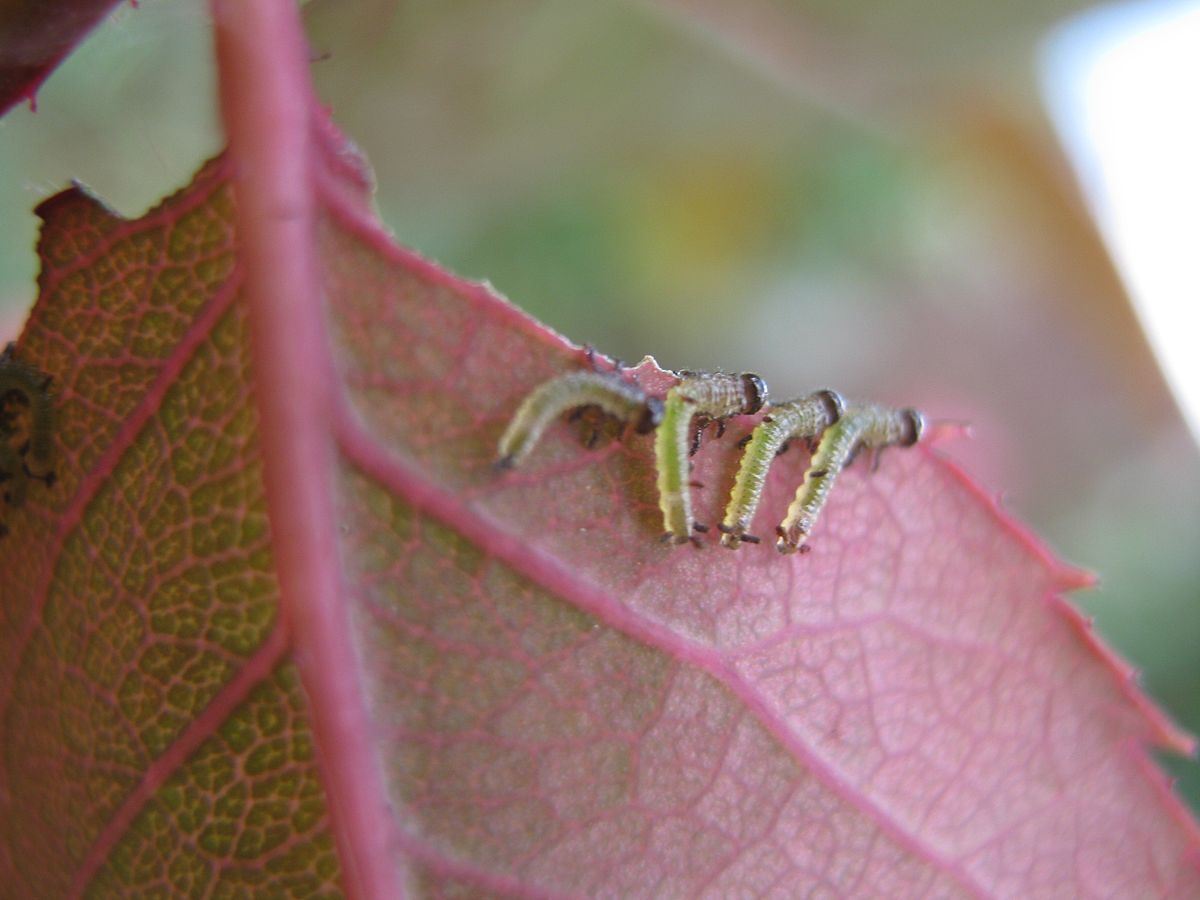 As larvas usam o caule da rosa para se proliferar, colocando ovos nele. Quando esses ovos eclodem, as larvas verdes passam a se alimentar descontroladamente das folhas, que são danificadas, rolam para dentro do próprio comprimento e ficam assim até o final da temporada de florescência.