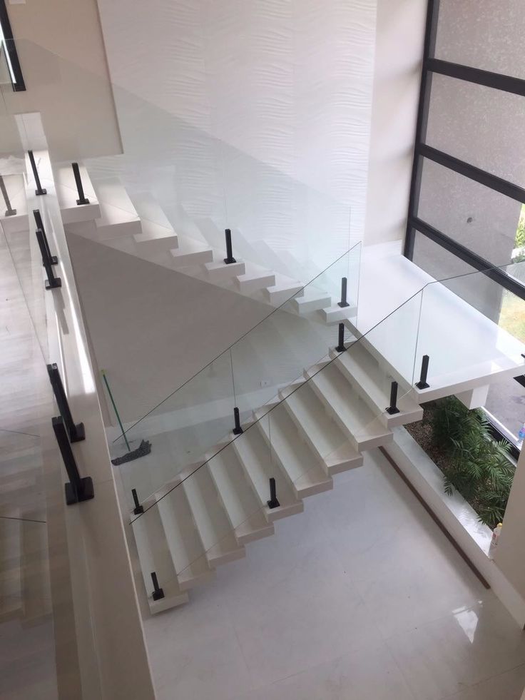 Corrimãos de vidro, por exemplo, oferecem segurança sem comprometer a visibilidade e a abertura do espaço.