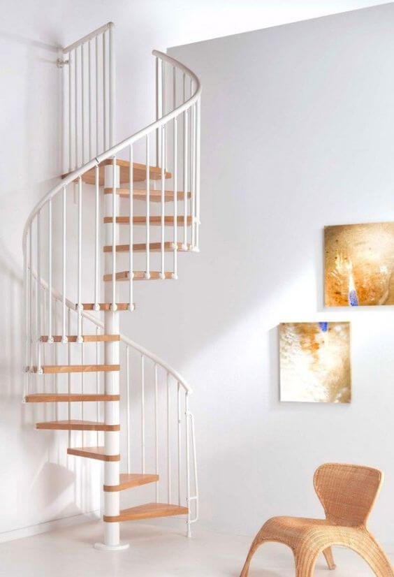 A escada caracol branca clássica é uma escolha atemporal que se adapta a qualquer estilo de decoração.