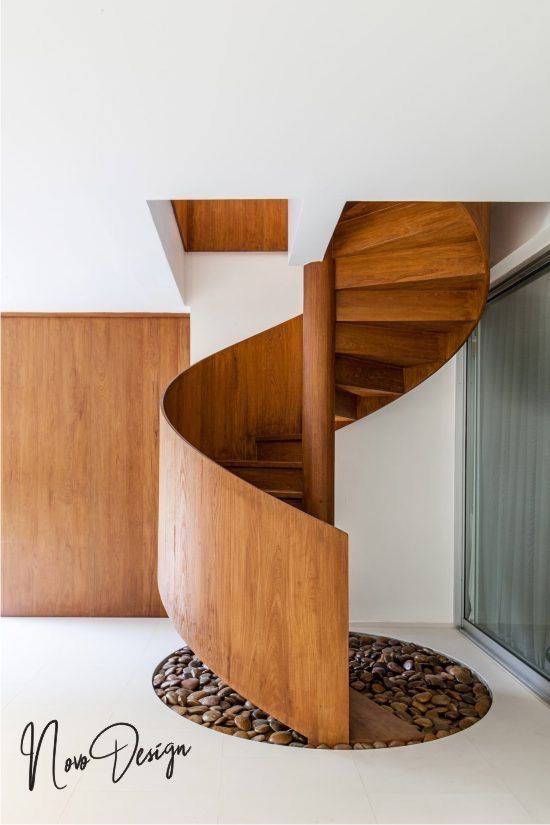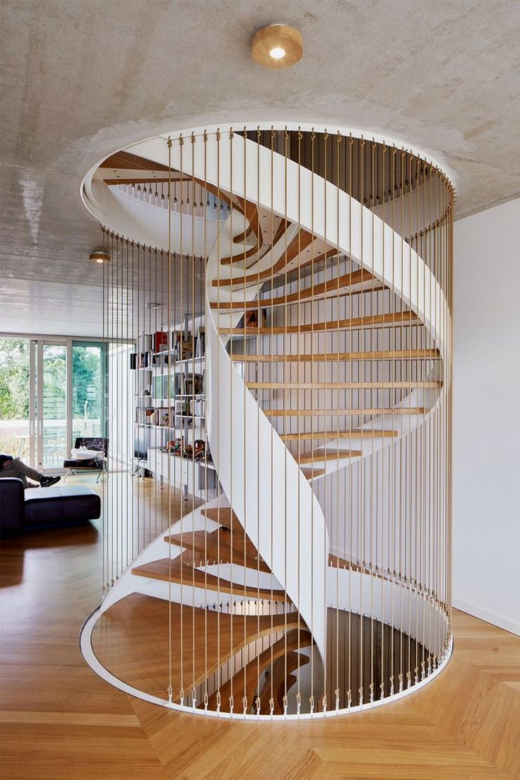 Por último, temos uma escada caracol com design inovador, que mistura elementos de arte e funcionalidade.