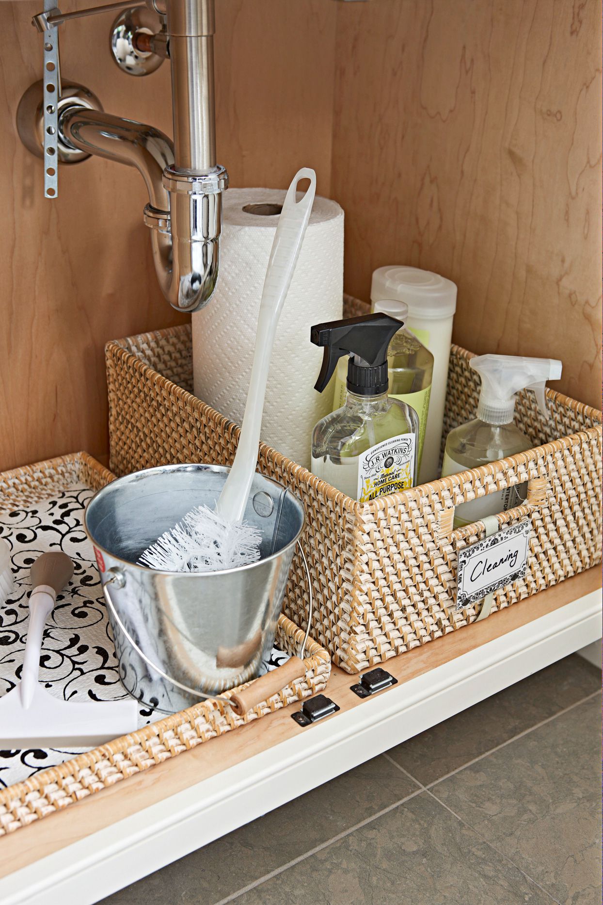 Em primeiro lugar, é importantíssimo que você não guarde produtos de limpeza embaixo da pia. E sabemos bem que isso pode ser uma prática bem comum por ser conveniente.