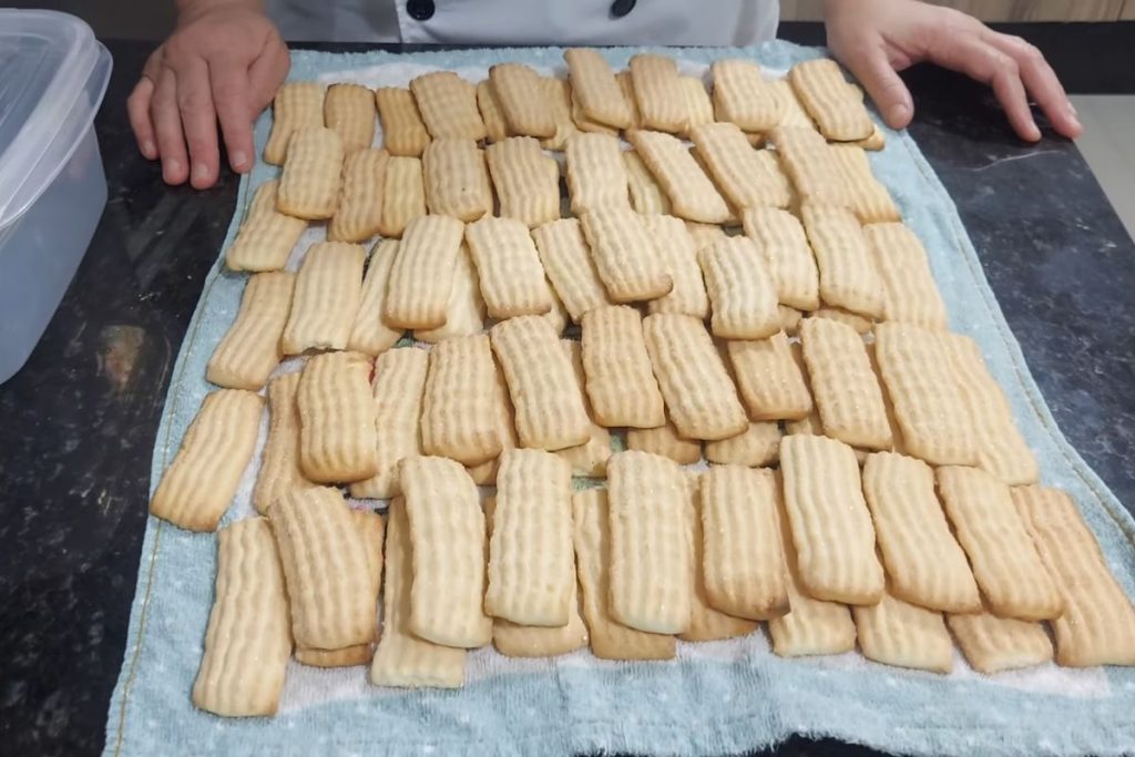 Cubra a massa e leve à geladeira por 20 minutos para firmar, especialmente em dias quentes. Depois de gelada, modele ou passe na máquina própria para biscoitos e disponha em assadeiras untadas levemente. Se desejar, passe cada bolacha no açúcar cristal para um toque crocante extra.