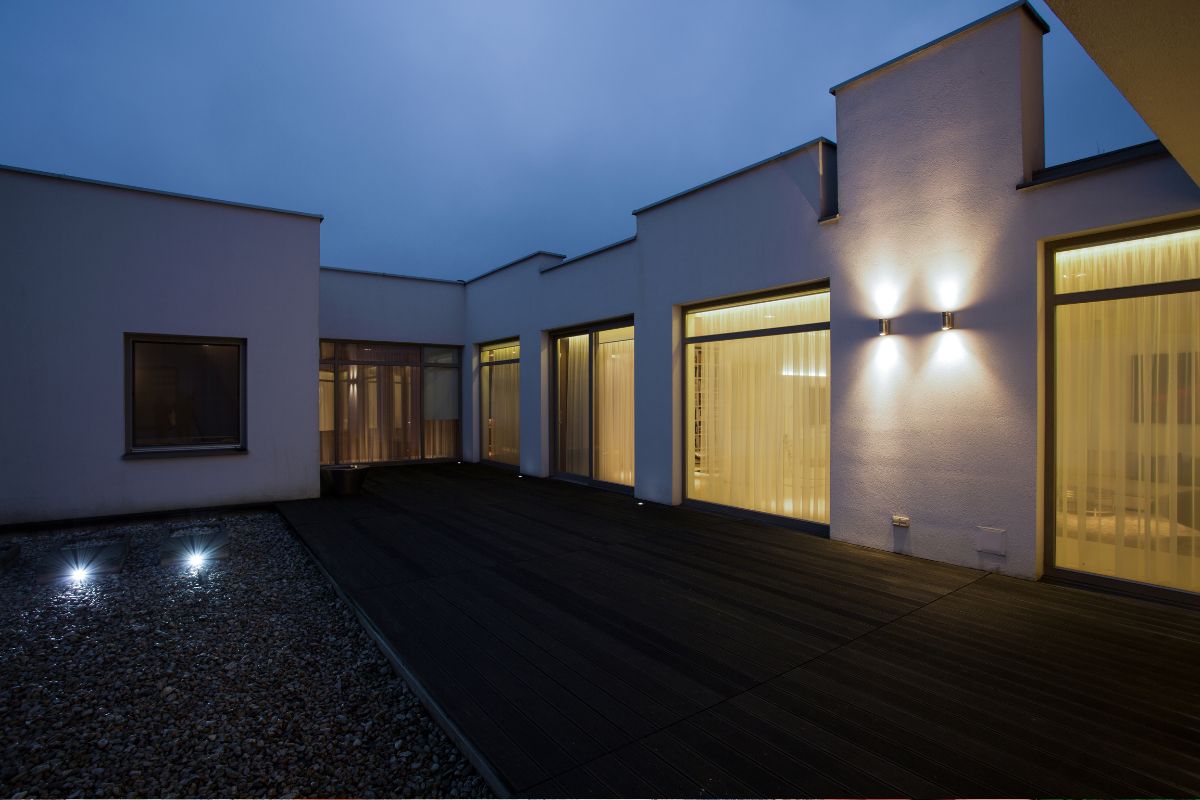 A iluminação é um ponto muito importante a ser levado em conta na decoração da fachada. A luz externa transforma completamente o ambiente.