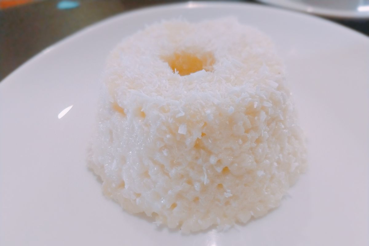 - Após o tempo de descanso, desenforme o bolo e polvilhe o restante do coco ralado (50g) por cima antes de servir.