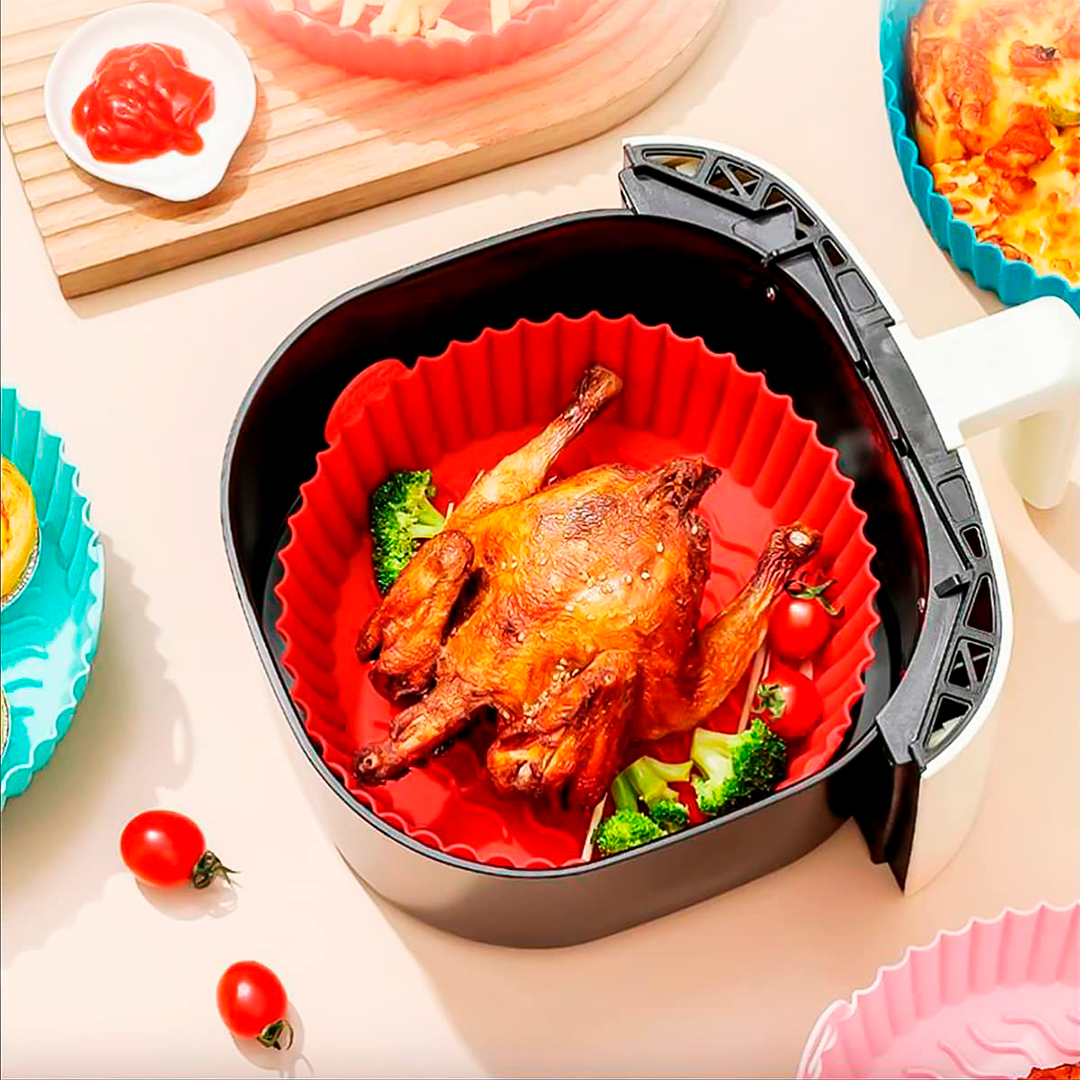 O silicone tem a capacidade de distribuir o calor de maneira mais uniforme do que o próprio cesto da air fryer, o que significa que seus alimentos cozinham de forma homogênea.
