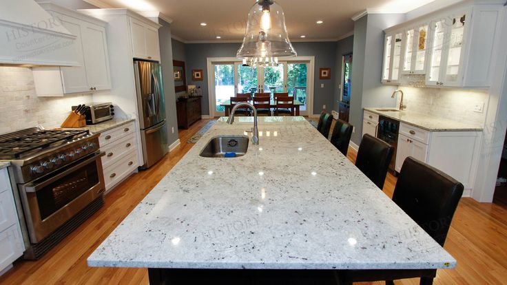 Esse granito também pode ser usado como forma de integrar ambientes, conforme você pode ver na imagem inspiração, onde a cozinha se conecta com a sala de jantar e a área de estar.
