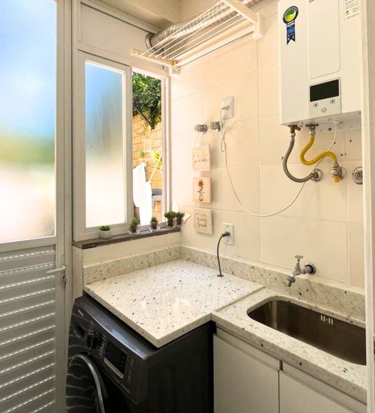 Já pensou em ter uma bancada de lavanderia feita com esse granito? A área de serviço costuma ter pouca atenção quando se trata de design, mas pode ganhar vida nova com a adição desse elemento.