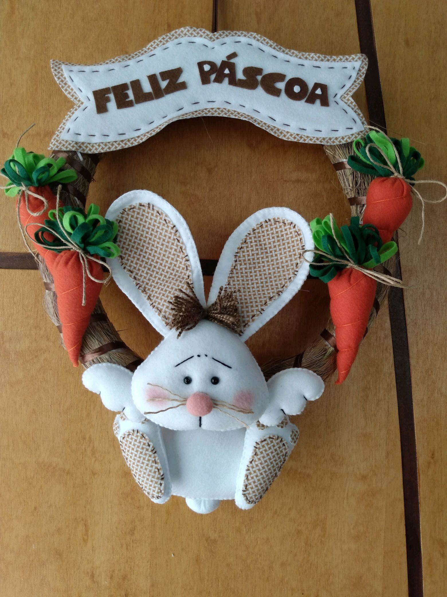 Os coelhinhos, que também são símbolos da Páscoa, deixarão sua guirlanda ainda mais encantadora! Você pode usar coelhos de plástico, tecido, feltro e pelúcia, desde que tenham tamanho proporcional ao da guirlanda.