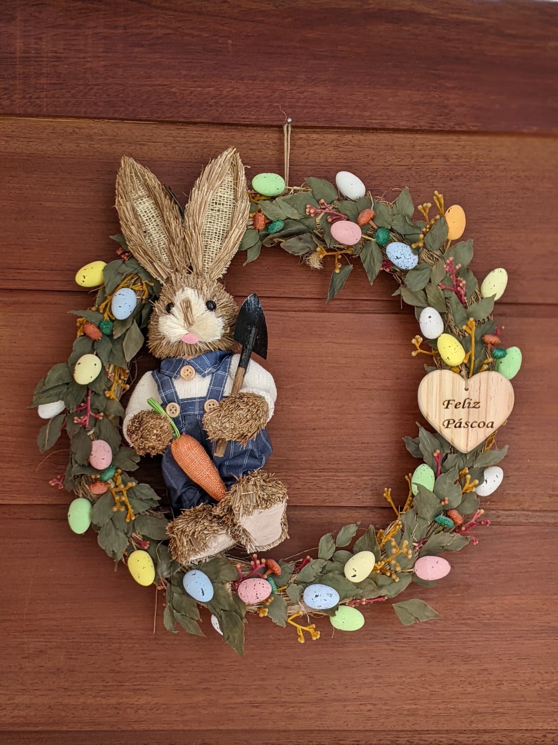 1. Faça uma guirlanda de Páscoa com materiais rústicos