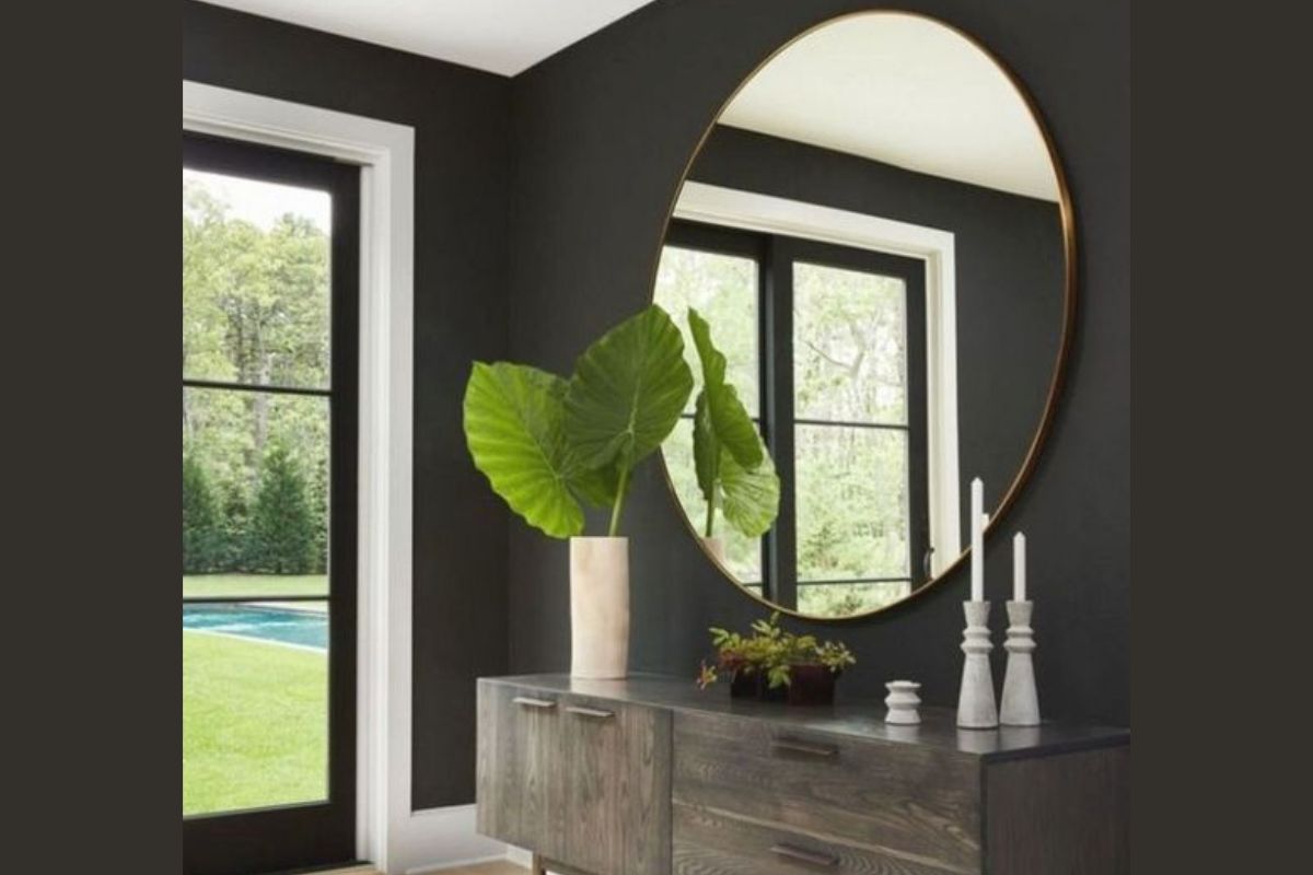 O espelho redondo é uma tendência que veio para ficar em 2024. Além de ser funcional para dar uma última conferida no visual antes de sair, ele também adiciona um toque de elegância ao seu hall de entrada.