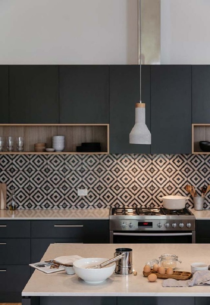 Eles criam contraste e dinamismo, sendo ideais para cozinhas que possuem armários escuros e bancadas claras. Este estilo é indicado principalmente para quem deseja destacar o backsplash e criar um ponto focal na decoração.