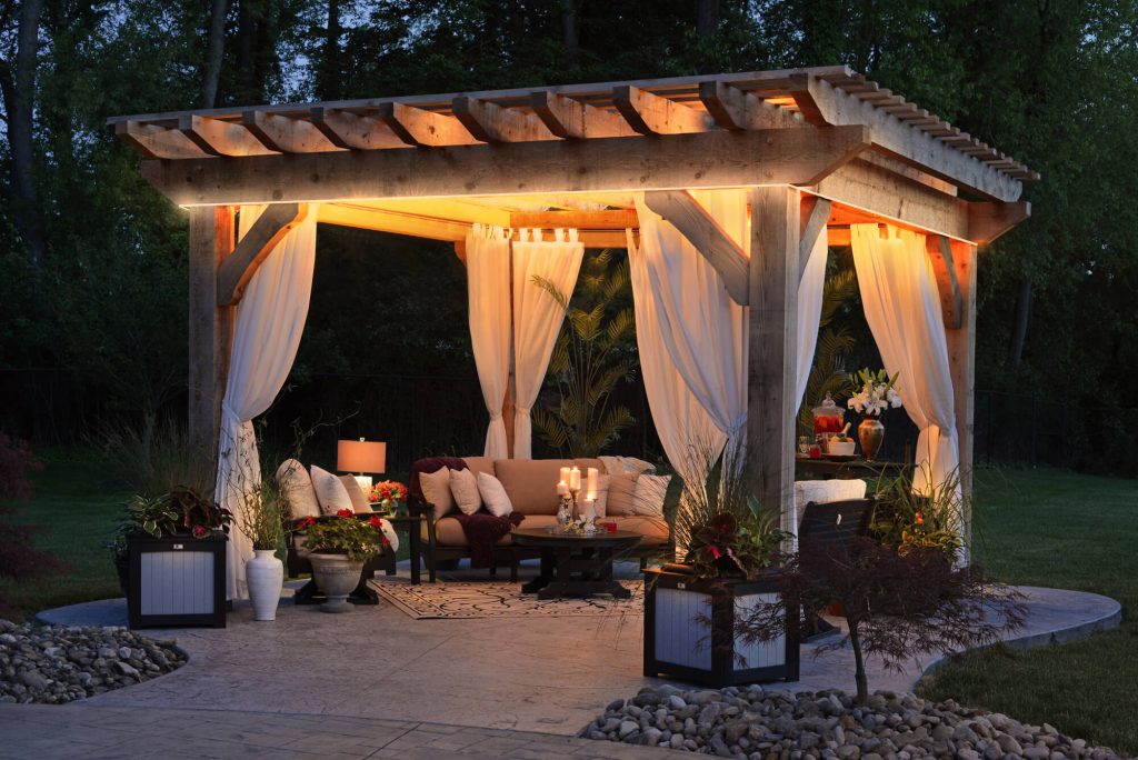 Com jogos de luz e sombra, você pode criar um efeito teatral que transformará seu pergolado em um cenário mágico.