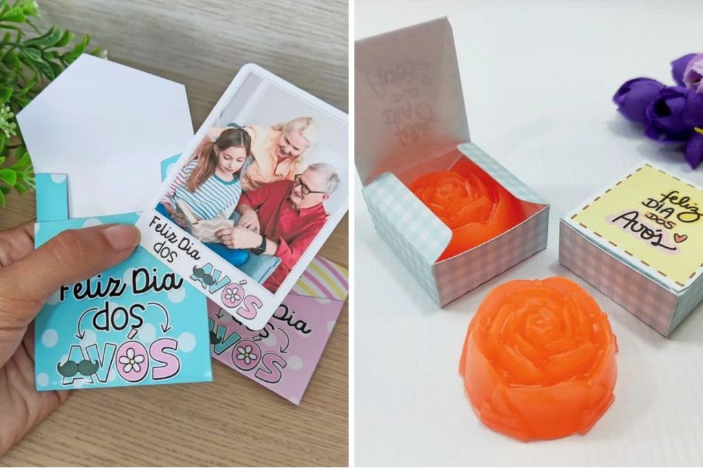 Você pode optar por um sabonete em forma de flor, de coração, ou outra forma que possua significado, e embalá-lo em uma caixinha personalizada com uma mensagem especial para os seus avós.