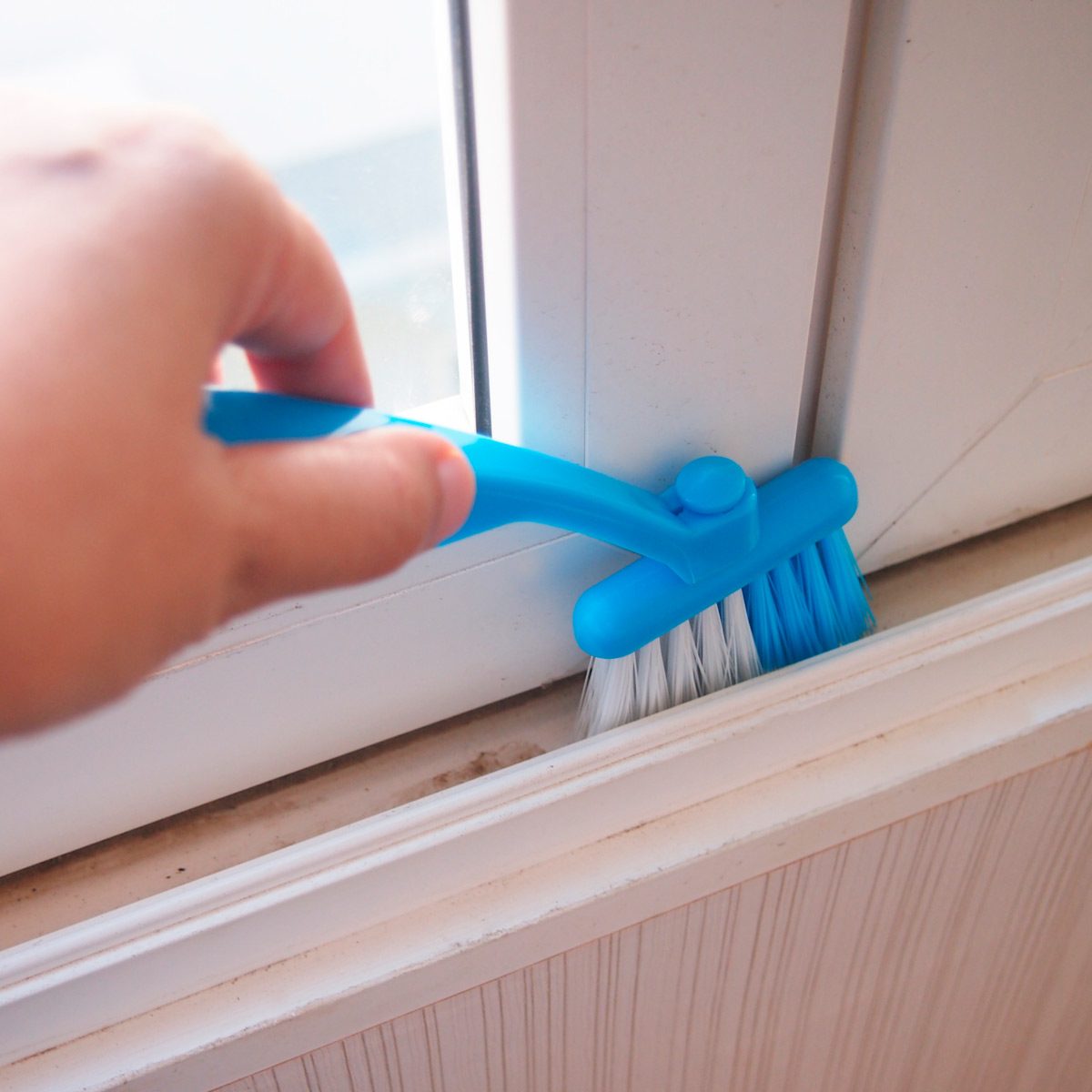 Com a sujeira mais soltinha, você vai poder fazer a limpeza do trilho da janela.