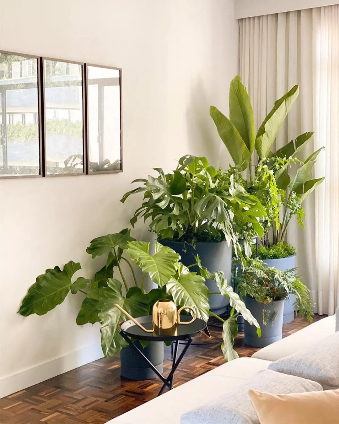 planta perto de janela protegida por cortina