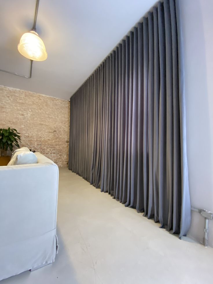 Experimente instalar cortinas de teto a chão em portas de varanda ou entrada de sacadas. Isso cria fluidez no espaço e dá a sensação de amplitude.