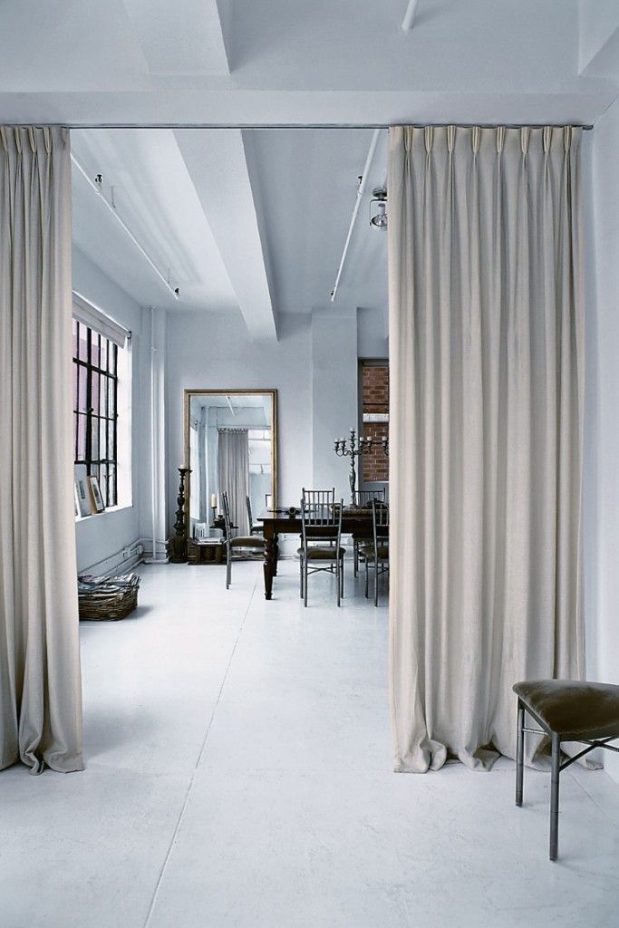 Se sua casa tem um espaço integrado, como sala e cozinha, ou um ambiente compacto, as cortinas podem ser usadas para criar divisórias elegantes e funcionais.