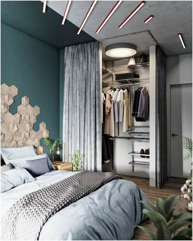 Além de economizar espaço, as cortinas oferecem uma alternativa aconchegante e acessível. Escolha tecidos estampados ou texturizados para personalizar o ambiente.