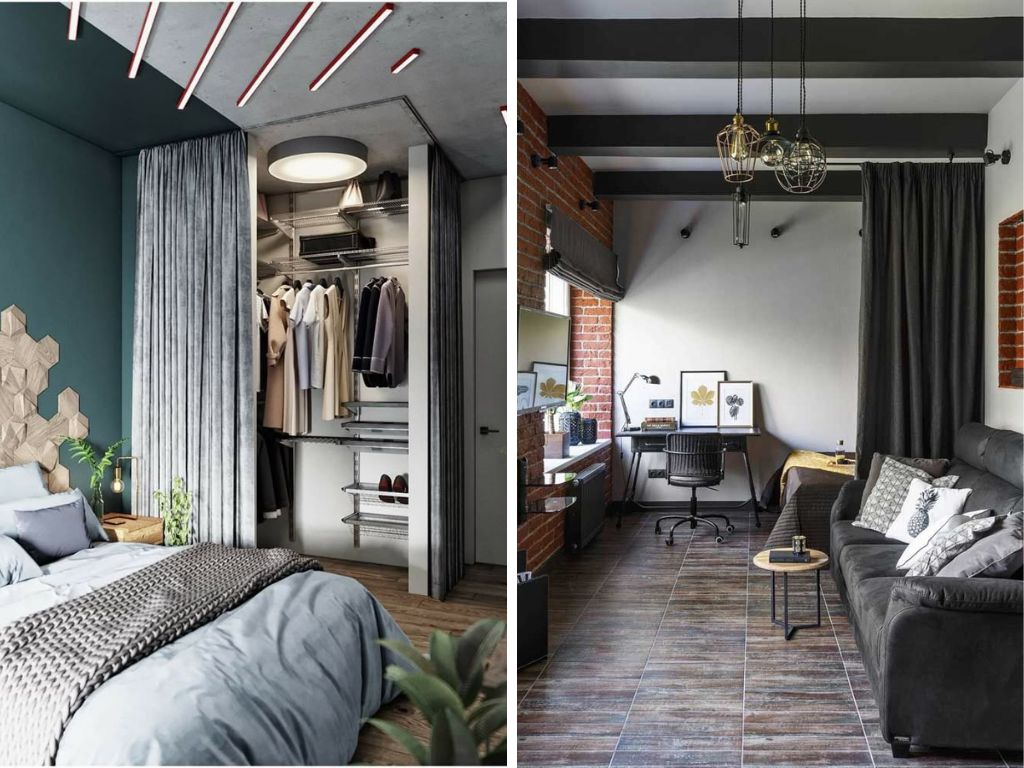 Essa ideia é prática para delimitar espaços de trabalho em casa ou até criar um quarto extra em imóveis pequenos, como estúdios ou quitinetes.