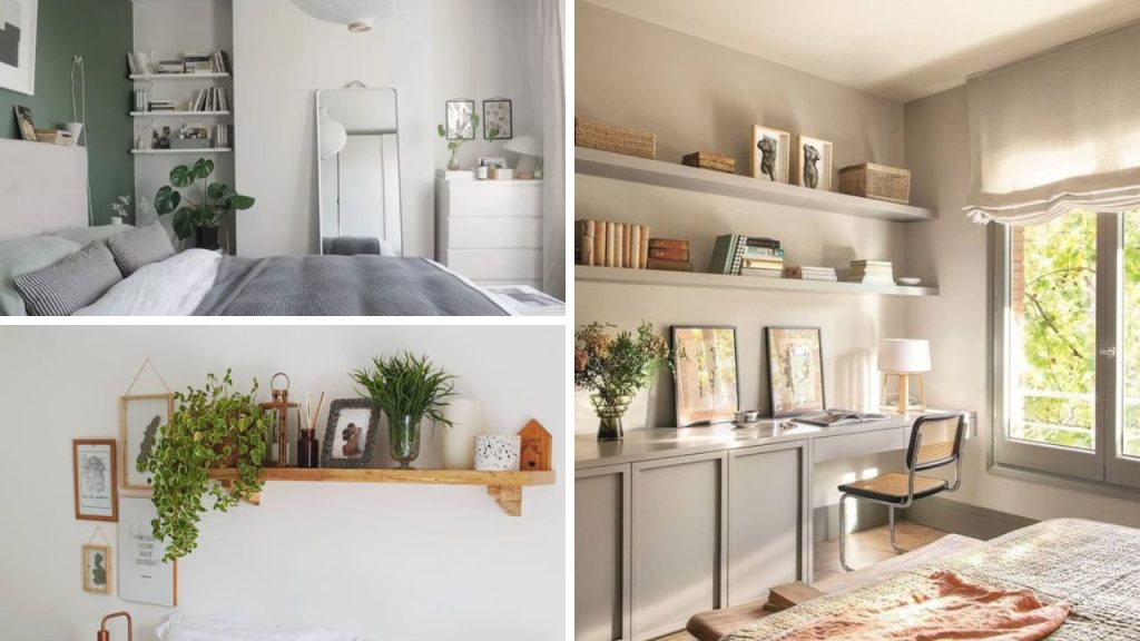 Os cantos do quarto são áreas muitas vezes subutilizadas, mas com o uso de prateleiras, esse espaço ganha uma nova vida.