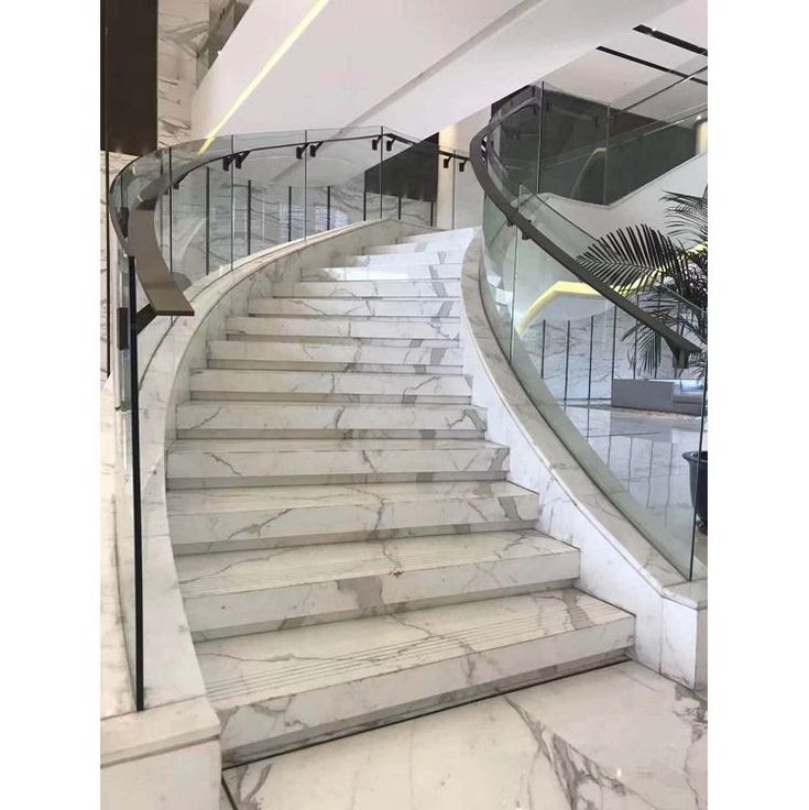 A combinação com corrimãos de vidro adiciona um toque moderno, fazendo um contraste harmonioso com o clássico mármore.