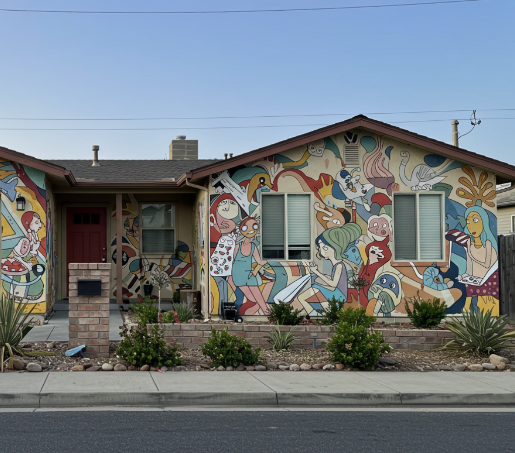 4. Frente de casa com arte mural