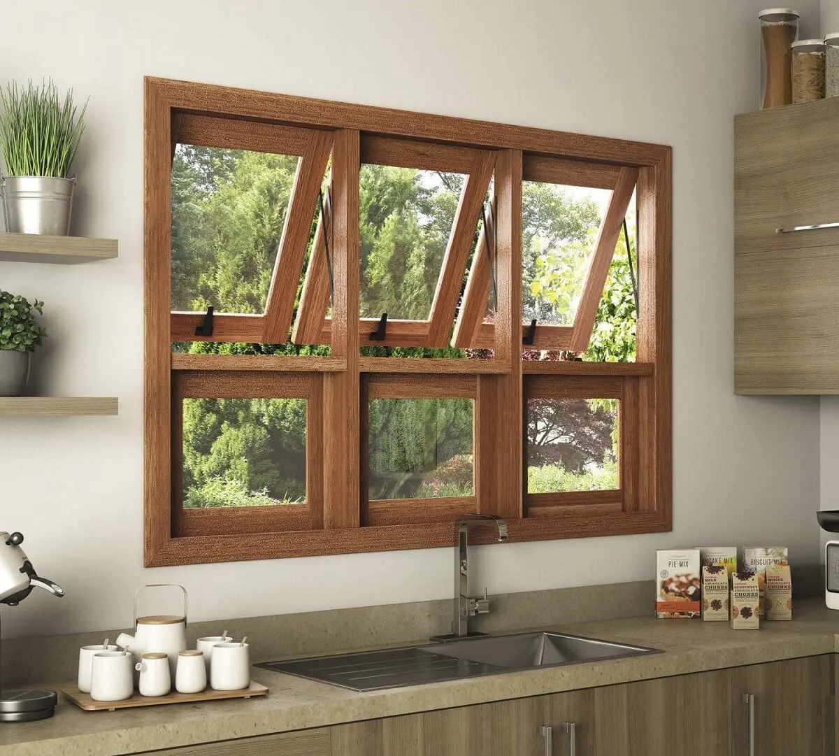 Trata-se do modelo mais tradicional de janela para cozinha. Ele possui folhas móveis que são projetadas para abrir tanto para dentro como para fora do imóvel, dependendo do espaço disponível.