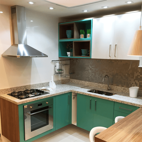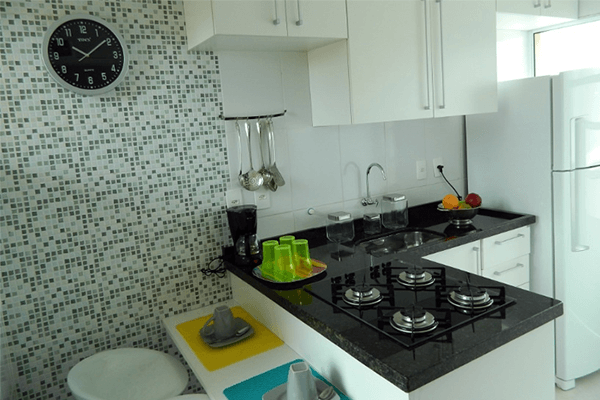 A pia e fogão são os móveis de cozinha mais importantes, e por isso, os mais complicados de serem substituídos. Por isso, a melhor forma de incluí-los em ambientes pequenos é de forma embutida nas bancadas, deixando a pia perto do fogão.