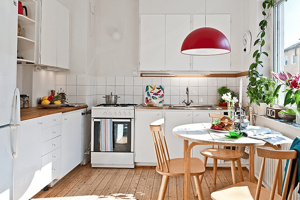 Os móveis para cozinhas pequenas geralmente já são planejados para lugares em que espaço é tudo o que mais falta. Sendo assim, será muito difícil incluir uma mesa redonda no meio do ambiente. Algumas adaptações são imprescindíveis.