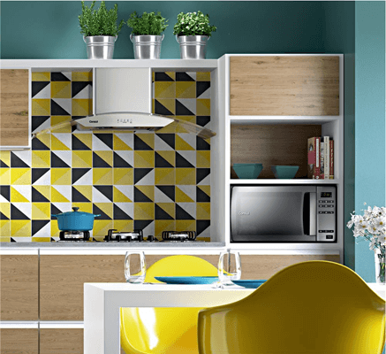 A inspiração fica por conta da sua criatividade, já que você pode investir em um estilo contemporâneo com pastilhas de cores urbanas como diversos tons de cinza ou remeter ao estilo clássico com adesivos que lembrem azulejos de casas portuguesas antigas.