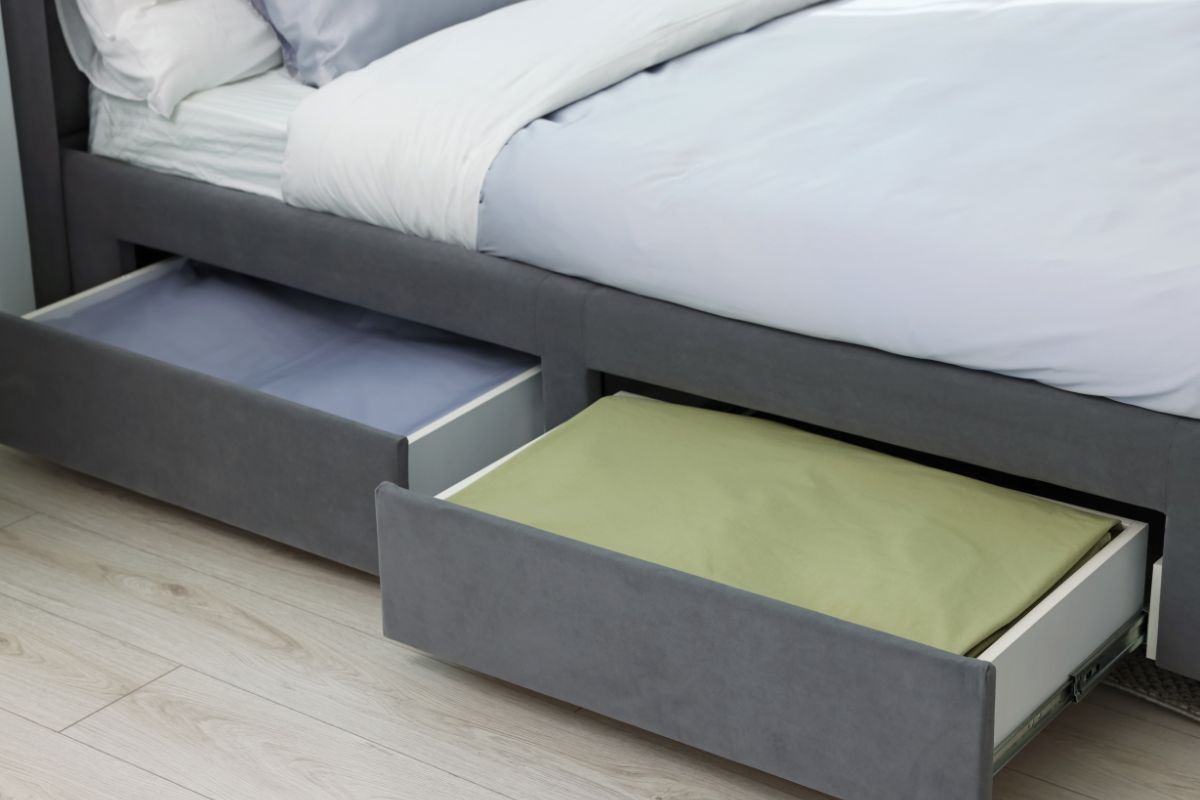 Em casas pequenas, cada centímetro conta, e a cama pode ter mais de uma função. Camas com gavetas embutidas são perfeitas para o armazenamento de roupas de cama, roupas fora de estação e outros itens que não são usados diariamente.