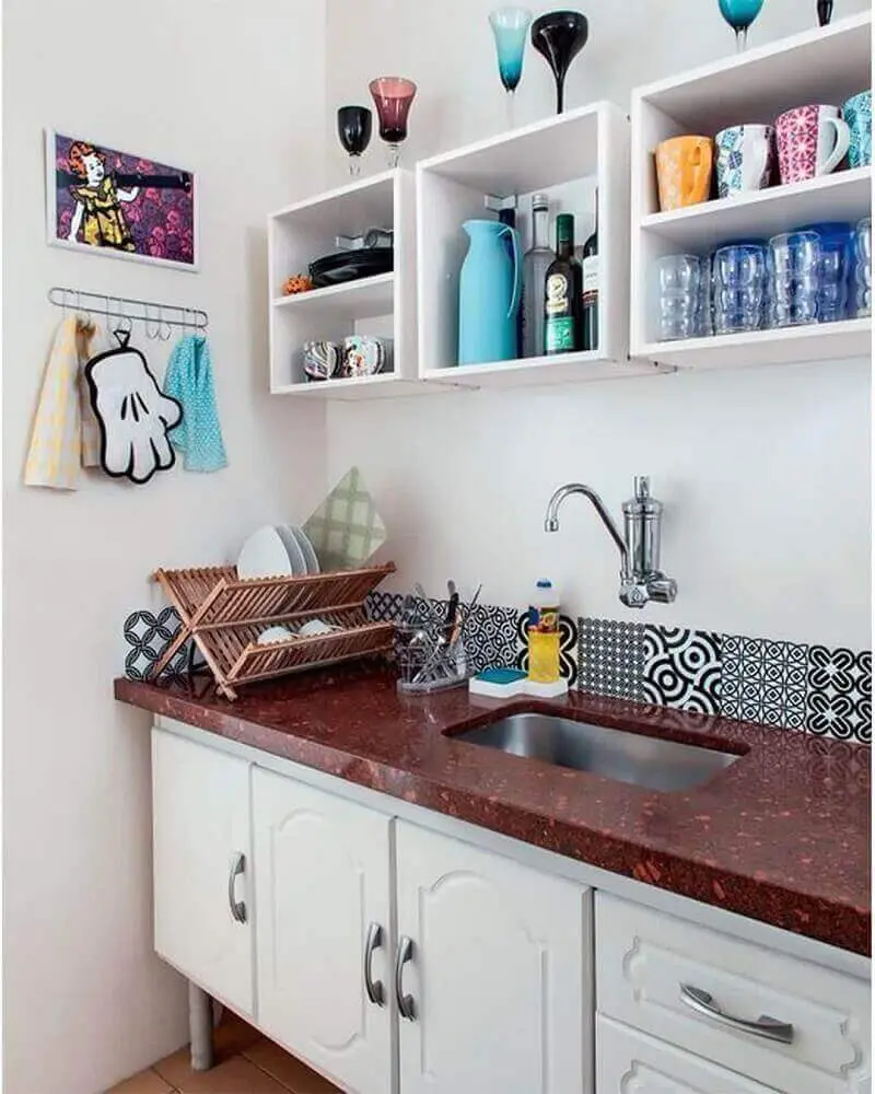 Ter nichos na cozinha é o tipo de coisa que dá super certo na decoração. Isso porque eles deixam o ambiente com uma cara mais moderna e também melhora e muito a organização dos itens.