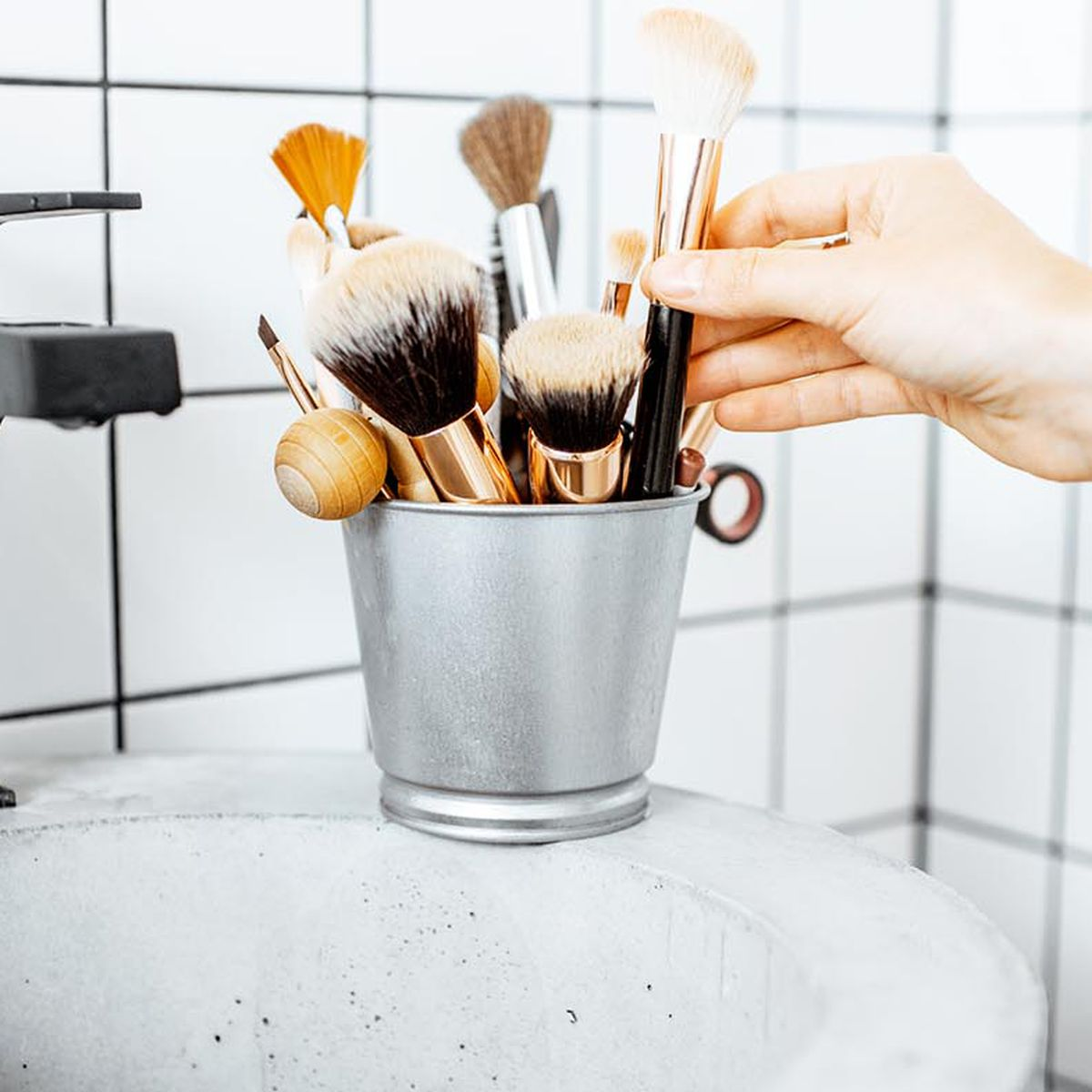 Os pincéis que você utiliza para aplicar uma maquiagem não tendem a sofrer as mesmas alterações que a maquiagem em si acaba sofrendo, quando armazenada no banheiro.
