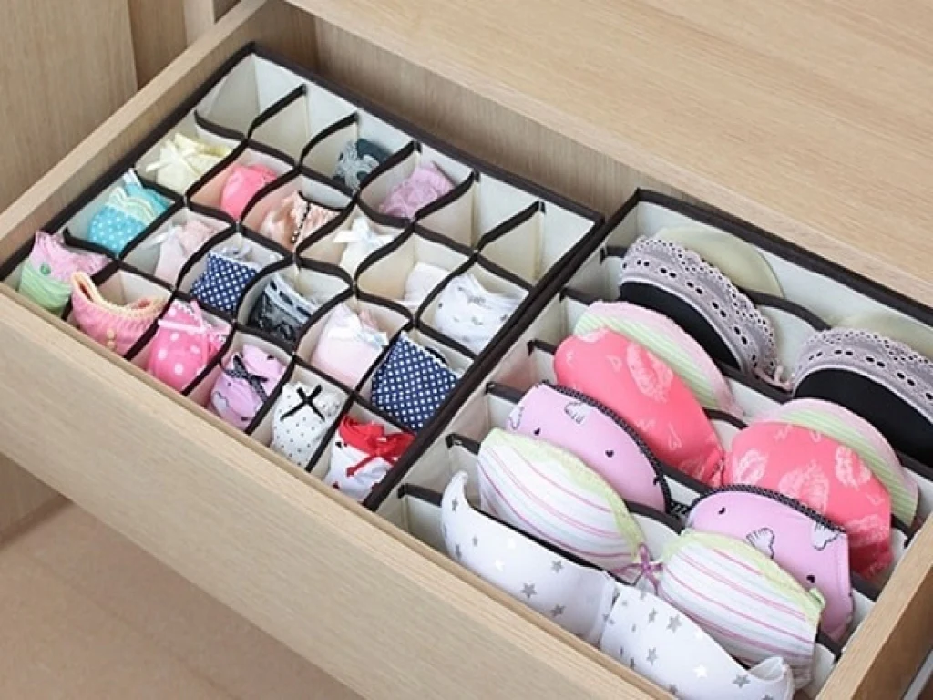 Como o nome já diz, os organizadores de gaveta são elementos que vão facilitar e muito o processo de organização de roupas íntimas. Isso porque eles apresentam uma estrutura bem organizada, em que você só tem que ir alocando cada peça.