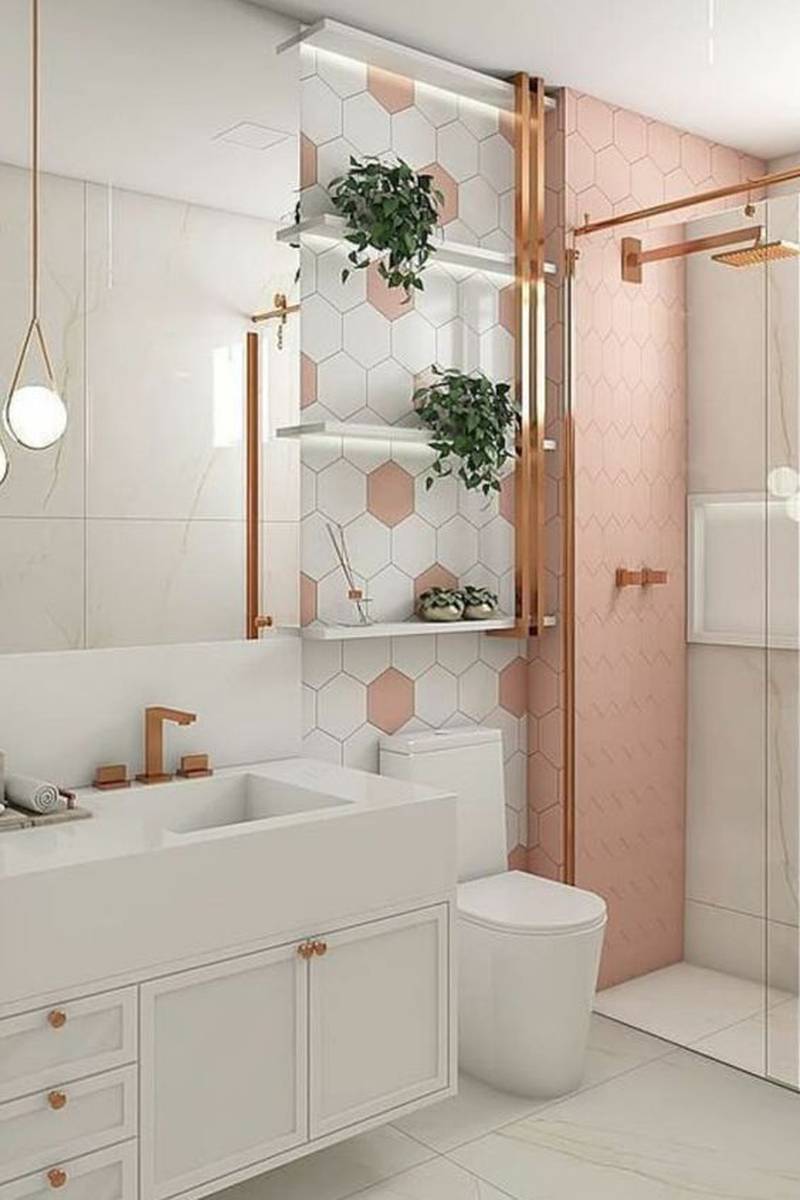 Como são claras, tais tonalidades refletem mais a luz natural e artificial, contribuindo para que se tenha uma melhor distribuição da claridade no banheiro.