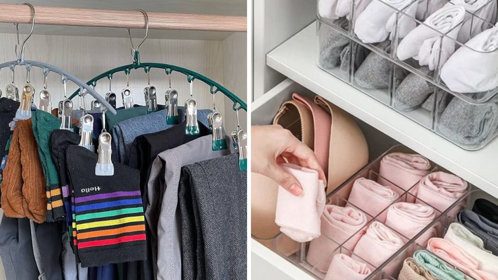 Eles ajudam a manter a roupa dobrada e os acessórios organizados, evitando a bagunça. As colmeias, por exemplo, são perfeitas para organizar peças pequenas, como meias e cuecas, e até mesmo camisetas.