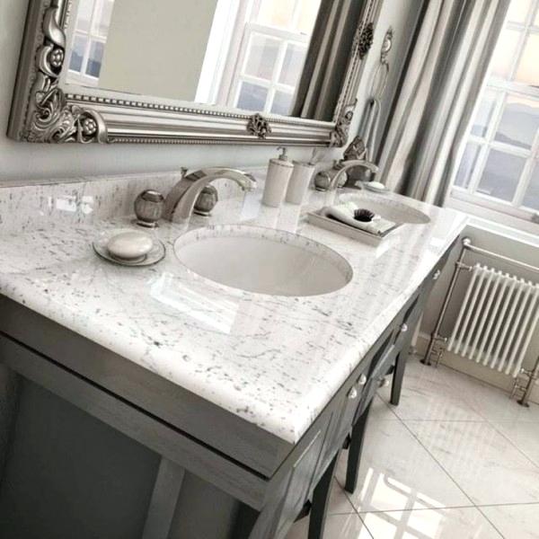 Seja para clássicos ou modernos, um banheiro colorido pode exigir uma pia de granito branco.
