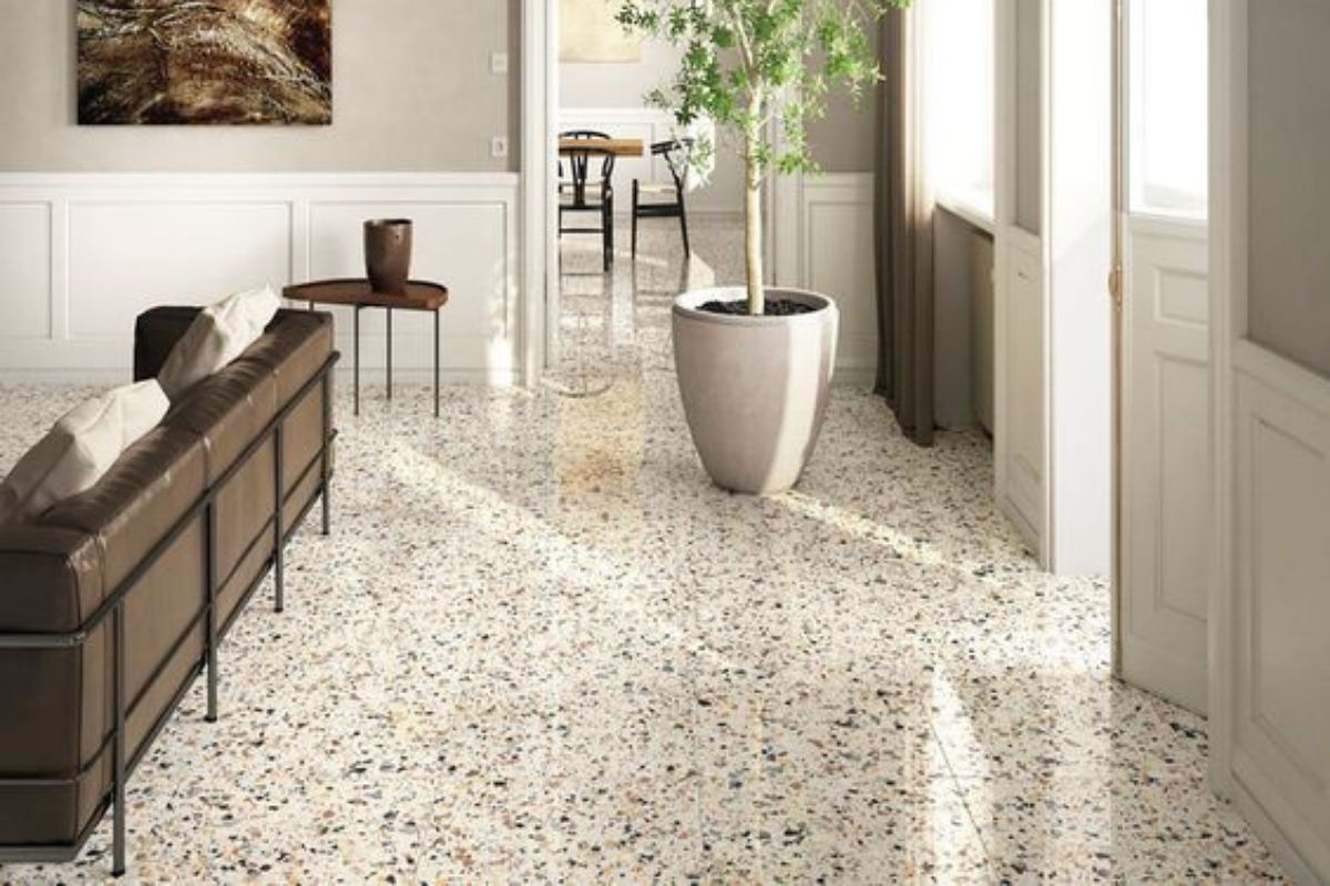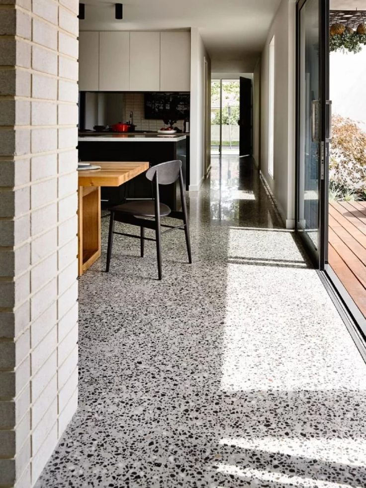Esse piso complementa estilos de decoração modernos ou industriais e cores claras nas paredes e nos móveis ajudam a criar um contraste atraente.