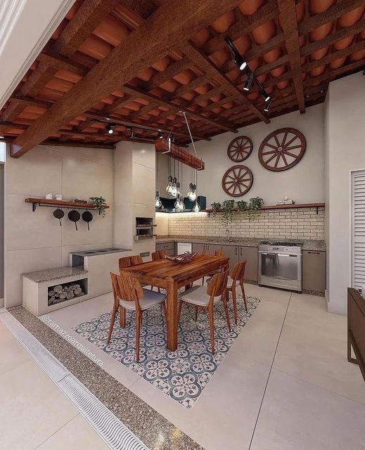A escolha da cor e do estilo do piso pode transformar a aparência da sua área gourmet.