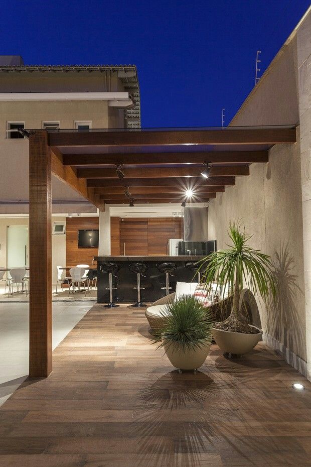 - Laminado: Uma excelente opção para quem busca um visual caloroso e acolhedor da madeira, com o benefício de ter uma manutenção menor. Os pisos laminados são práticos, mas menos resistentes à umidade que outros tipos de piso, o que não faz dele o mais indicado em áreas gourmet com piscina.