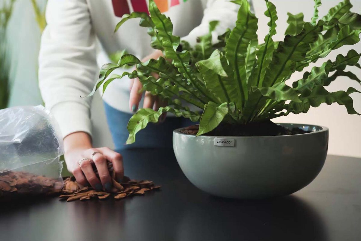 Ele vai bem em locais com luz filtrada ou meia-sombra, e o solo deve permanecer úmido, mas nunca encharcado. O asplênio também gosta de umidade no ar, então borrifar água ao redor ou usar um prato com pedras úmidas ajuda muito.
