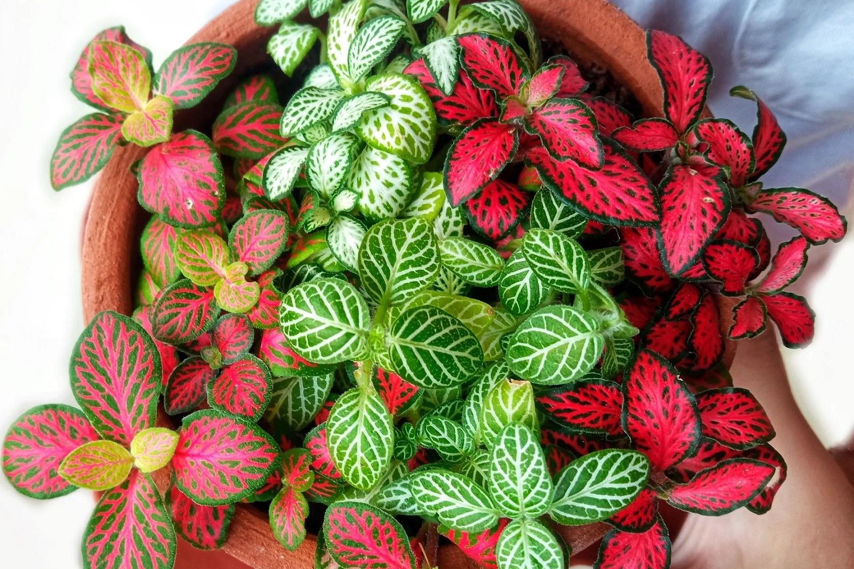 Se o seu espaço é pequeno, mas você quer uma planta com personalidade, a fitônia pode ser a escolha ideal. Suas folhas pequenas e coloridas, com veios brancos, rosados ou avermelhados, dão um efeito visual incrível em vasos ou terrários.