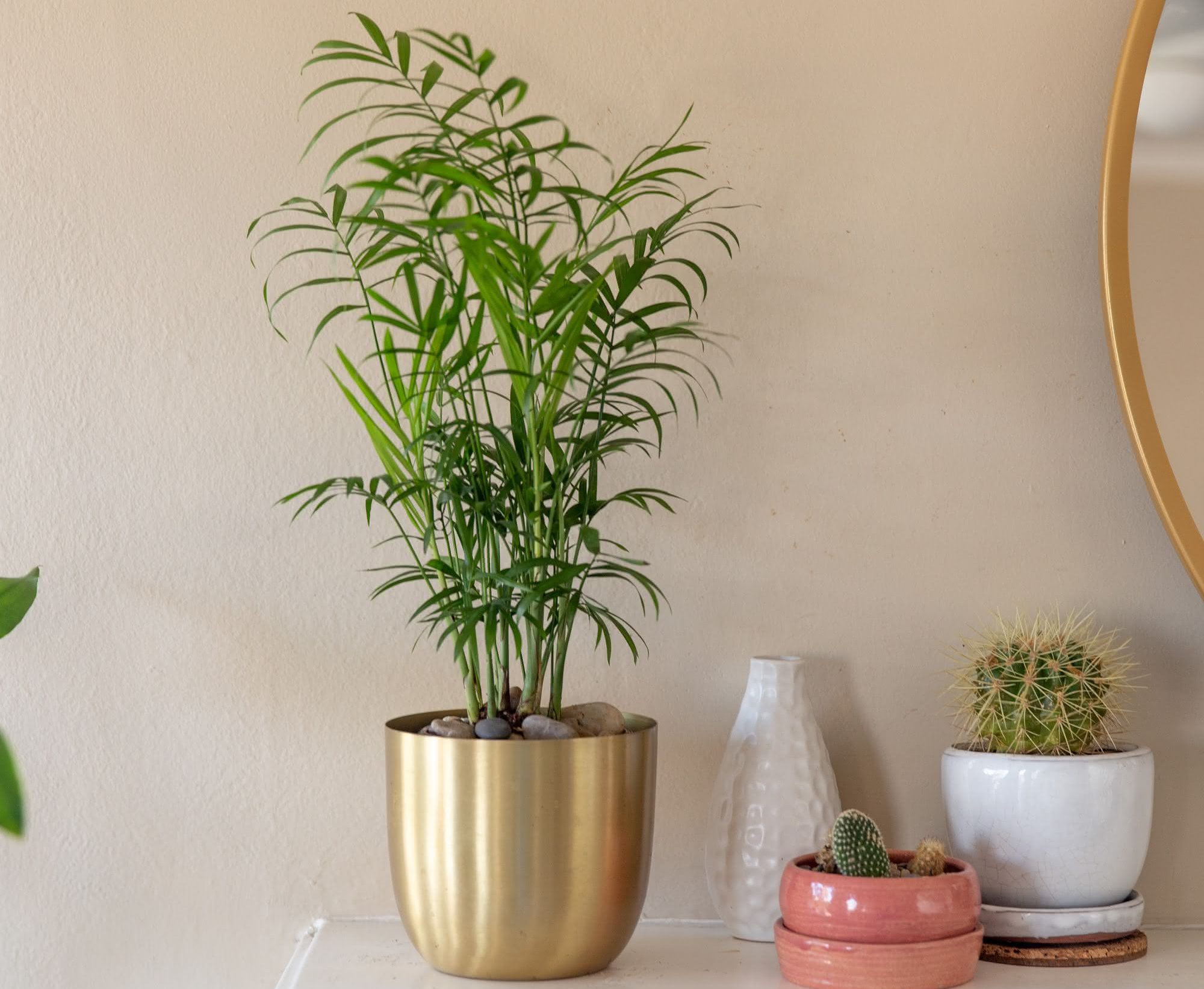 Se você quer um ar tropical dentro de casa, mas sem o drama de uma planta exigente, aposte na camedórea-elegante, uma espécie de palmeira compacta que se adapta bem a vasos médios.
