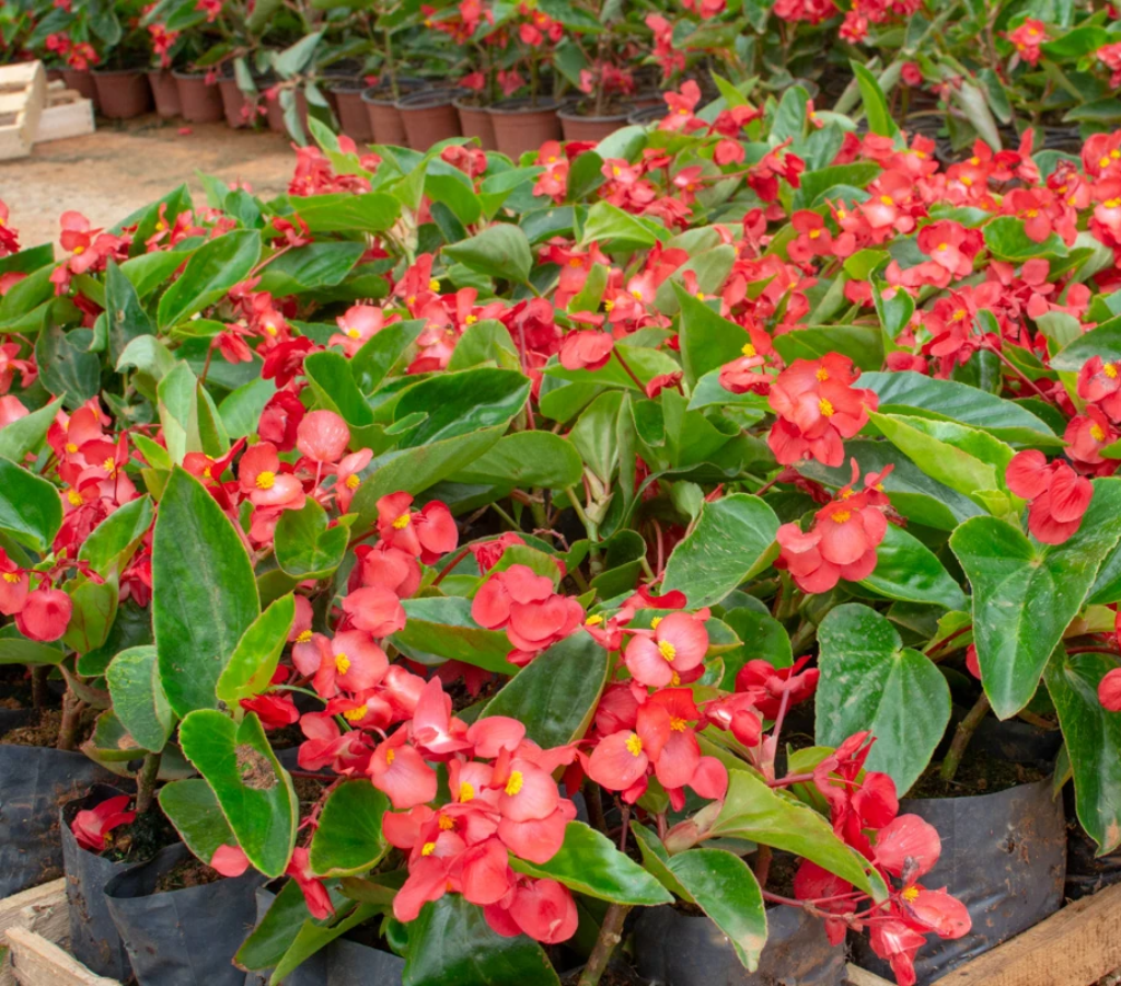 Com aparência volumosa e floração decorativa, a begônia asa de dragão é uma planta não tóxica e segura para cultivo em residências com crianças e animais.