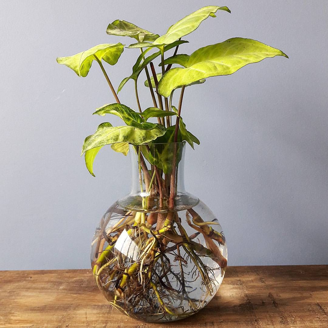 Muito adaptável à água, o singônio tem uma folhagem durável e é capaz de criar raízes e novas folhas em apenas algumas semanas.
