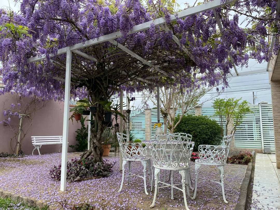 A glicínia é uma das plantas para pergolado que mais faz sucesso. Chamada também como flor-da-ternura, ela tem uma floração pendente de tirar o fôlego.