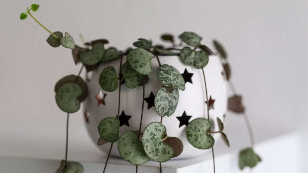 Trata-se de um tipo de suculenta que faz sucesso pelo formato de suas folhas, que lembram o coração. A Ceropegia woodii, como também é conhecida, é uma suculenta pendente.