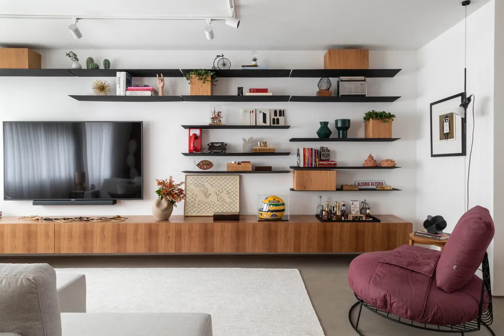 Quando se trata de apartamentos mais compactos, estas prateleiras são ideias para locais como esses. É uma forma prática e funcional de otimizar o espaço, tornando-o não apenas útil, mas também esteticamente agradável. Imagine, por exemplo, ter um cantinho exclusivo para exibir aquela coleção de objetos que você tanto ama.