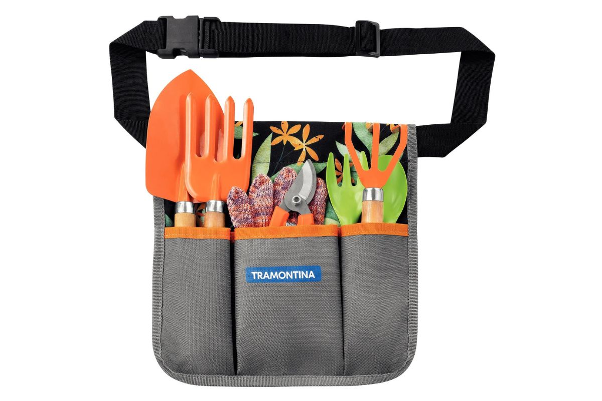 Esse da Leroy, além de 8 ferramentas, ainda acompanha um cinto onde todas elas ficam acomodadas, facilitando o manejo das plantas.