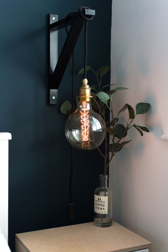 Luminárias industriais pendentes ou lâmpadas de filamento exposto são ótimas opções para criar um ambiente aconchegante e, ao mesmo tempo, moderno.
